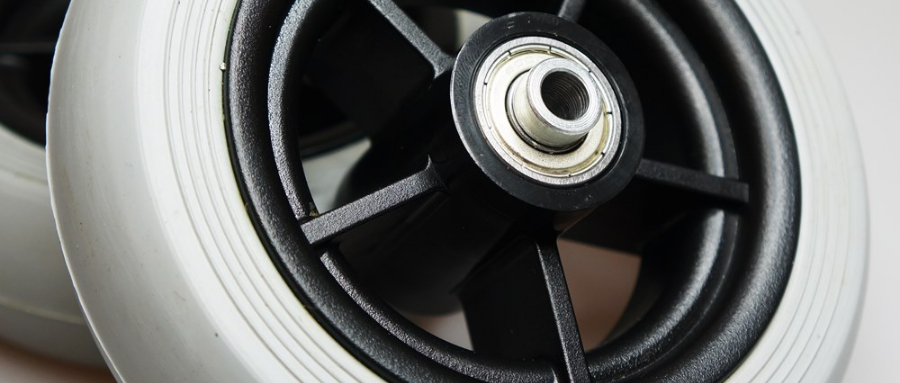 Rad, 140×30, Kunststofffelge, 5 Speichen, schwarz, Vollgummireifen